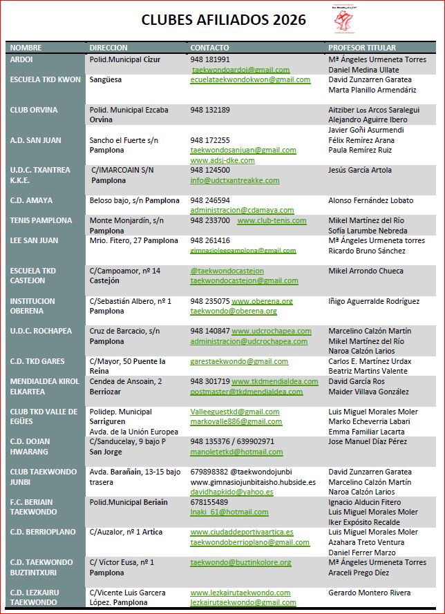 CLUBES Y PROFESORES COLEGIADOS F.N.T. 2026
